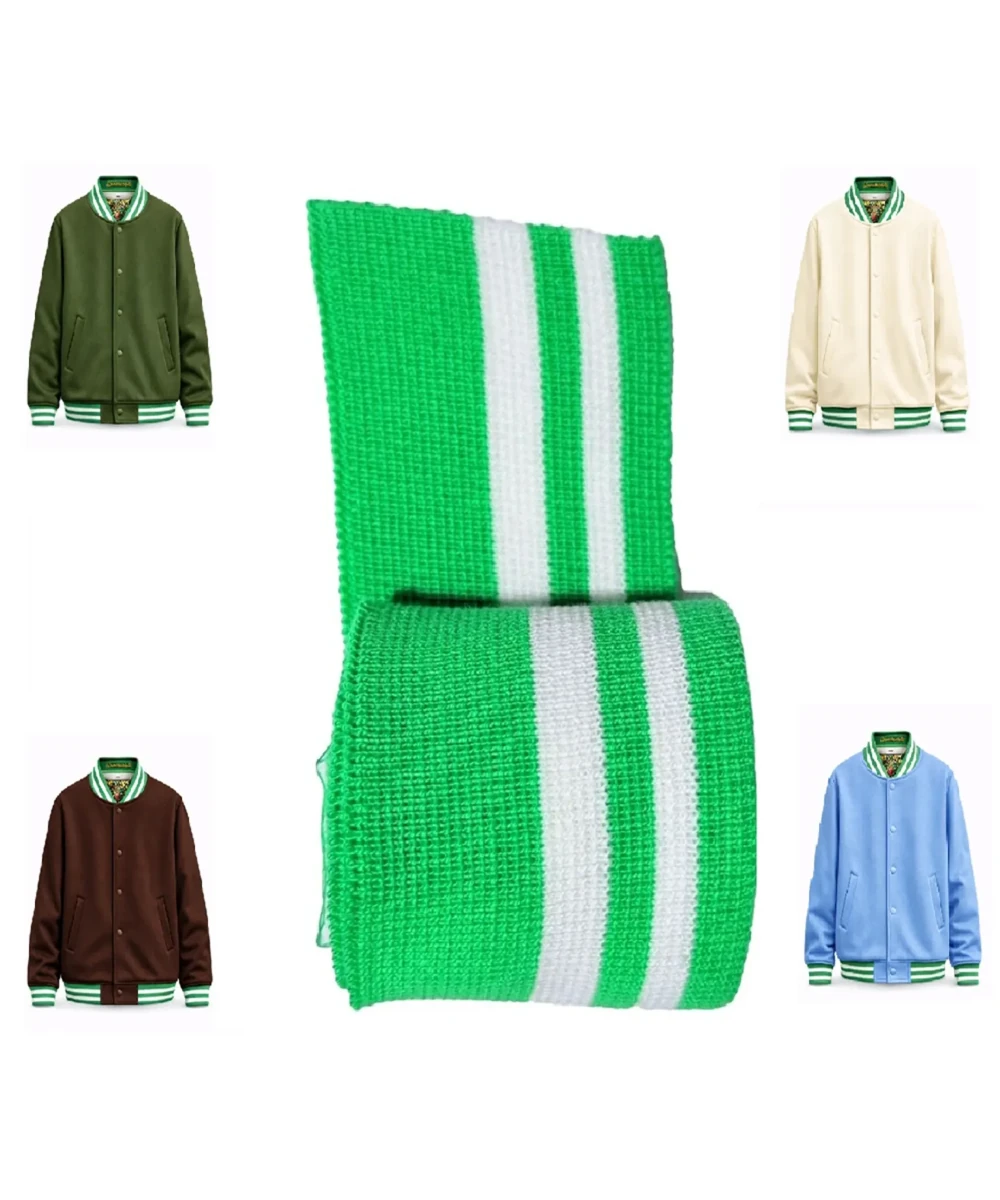 Triko ribana manşet yeşil beyaz çizgili, çok yönlü yapısı sayesinde hem profesyonel üretimlerde hem de bireysel